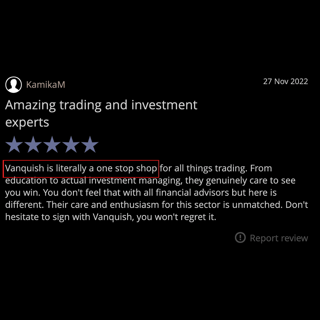 INCOME DISCLAIMER : Although we make every effort to accurately represent the services and/or products presented on this website, Vanquish Education LTD. makes no assurance, representation or promise regarding future earnings or income, or that you will make any specific amount of money, or any money at all, or that you will not lose money. Earnings or income statements, or examples of earnings or income, represent estimates of what you may earn; however, there is no promise or guarantee that you may experience the same level of earnings or income. There is no assurance that any prior success or past results regarding earnings or income may be an indication of your future success or results.